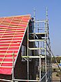 Unser Haus ist zu! Heute kam der Fensterbauer und brachte unsere Fenster und Türen, um sie auch gleich ein zu bauen. Gleichzeitig waren auch noch mal die Zimmerleute da, um die restlichen Giebel & Traufgesimse an zu bringen. Diese müssen wir nun in den nächsten Tagen selber streichen, solange das Gerüst noch aufgebaut ist und die Dachrinnen noch nicht montiet sind. Über Ostern haben wir nun angefangen zu spachteln und zu streichen. Am 14. und 15. April haben die Maurer die Außenfensterbänke erstellt. Die nächsten Tage waren wir mit streichen beschäftigt, schließlich wollten sämtliche Holzüberstände zwei mal gestrichen werden.